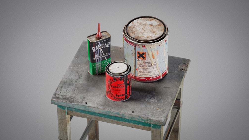 A pack of 3 paint and oil cans I scanned and processed on my free time. It's game ready with 4k PBR textures. Have fun with it!